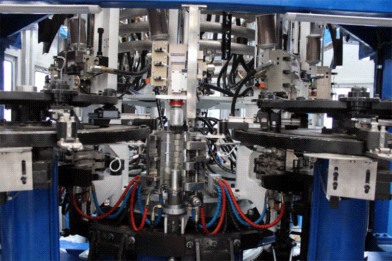 吹瓶部分實(shí)施了機(jī)械手雙層軌道曲線設(shè)計(jì)、吹瓶機(jī)模號加裝壓力檢測裝置、主吹輪氣源進(jìn)出采用旋轉(zhuǎn)式動(dòng)靜密封氣套(發(fā)明專利產(chǎn)品)、吹瓶機(jī)主吹輪采用旋轉(zhuǎn)式機(jī)械補(bǔ)償水套等多項(xiàng)技改措施,大大加強(qiáng)了吹瓶運(yùn)行的安全性、穩(wěn)定性,并延長了關(guān)鍵部件的使用壽命。